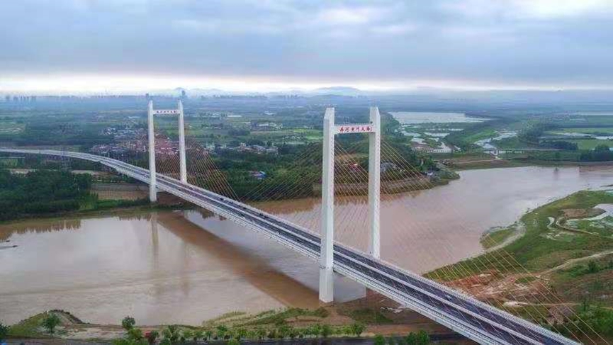 济齐黄河公路大桥位于济南市槐荫区与德州市齐河县交界处,是山东省委省政府“一圈一带”发展战略的重要基础设施工程。大桥全长3767.9米,主桥采用塔墩固结、塔梁分离半漂浮体系,全长840米,主跨为单跨跨径410米双塔双索面钢-混组合梁斜拉桥,是黄河流域单跨最大的斜拉桥。该桥进一步拉近济南与齐河之间的距离,大大加快德州融入省会经济圈的脚步。